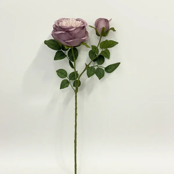 • Rose artificielle givrée violette – 63 cm – effet romantique