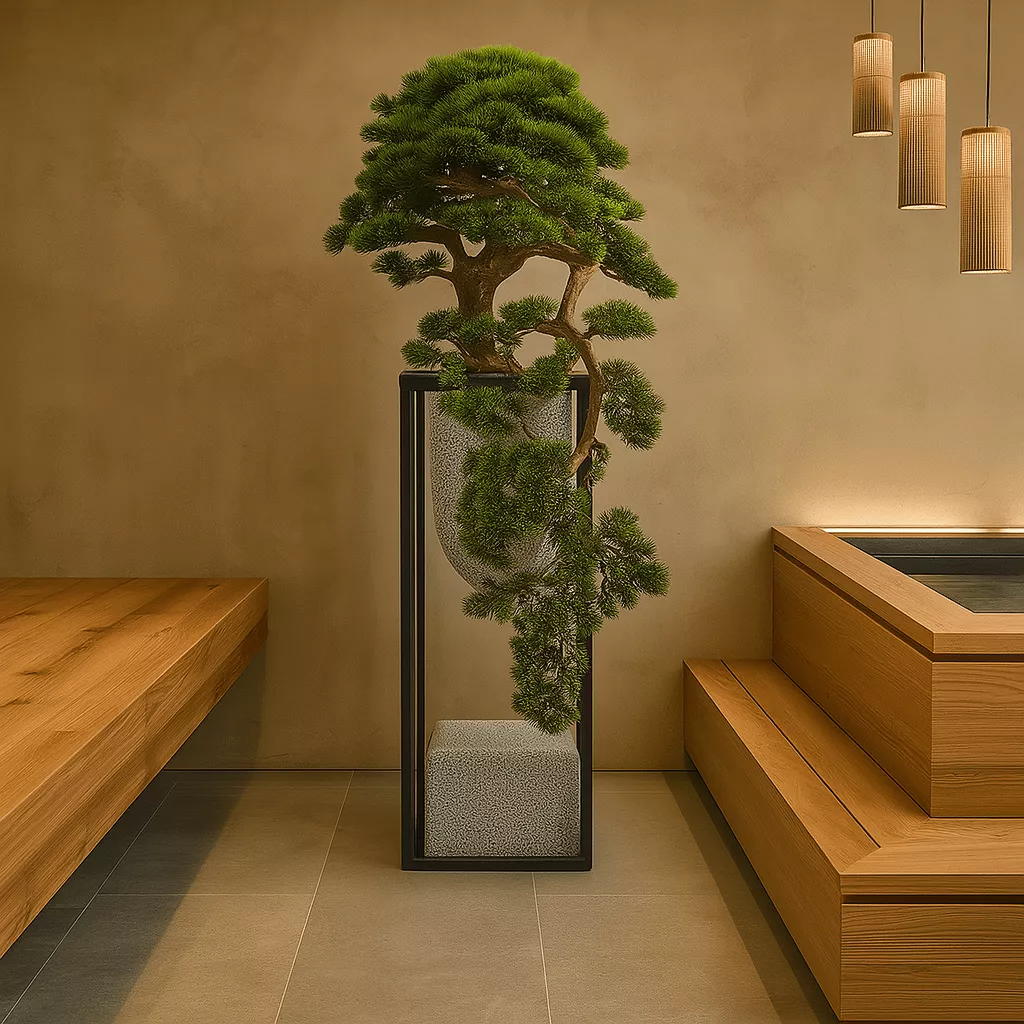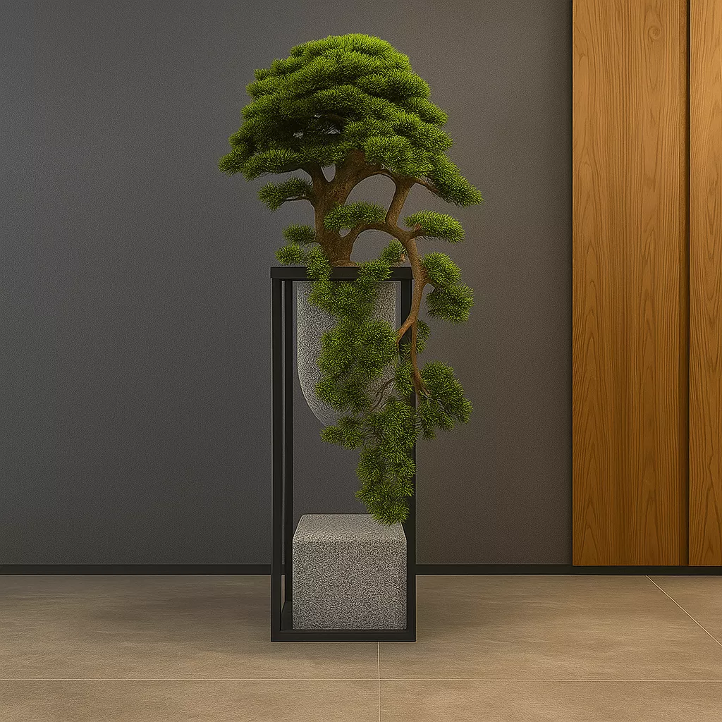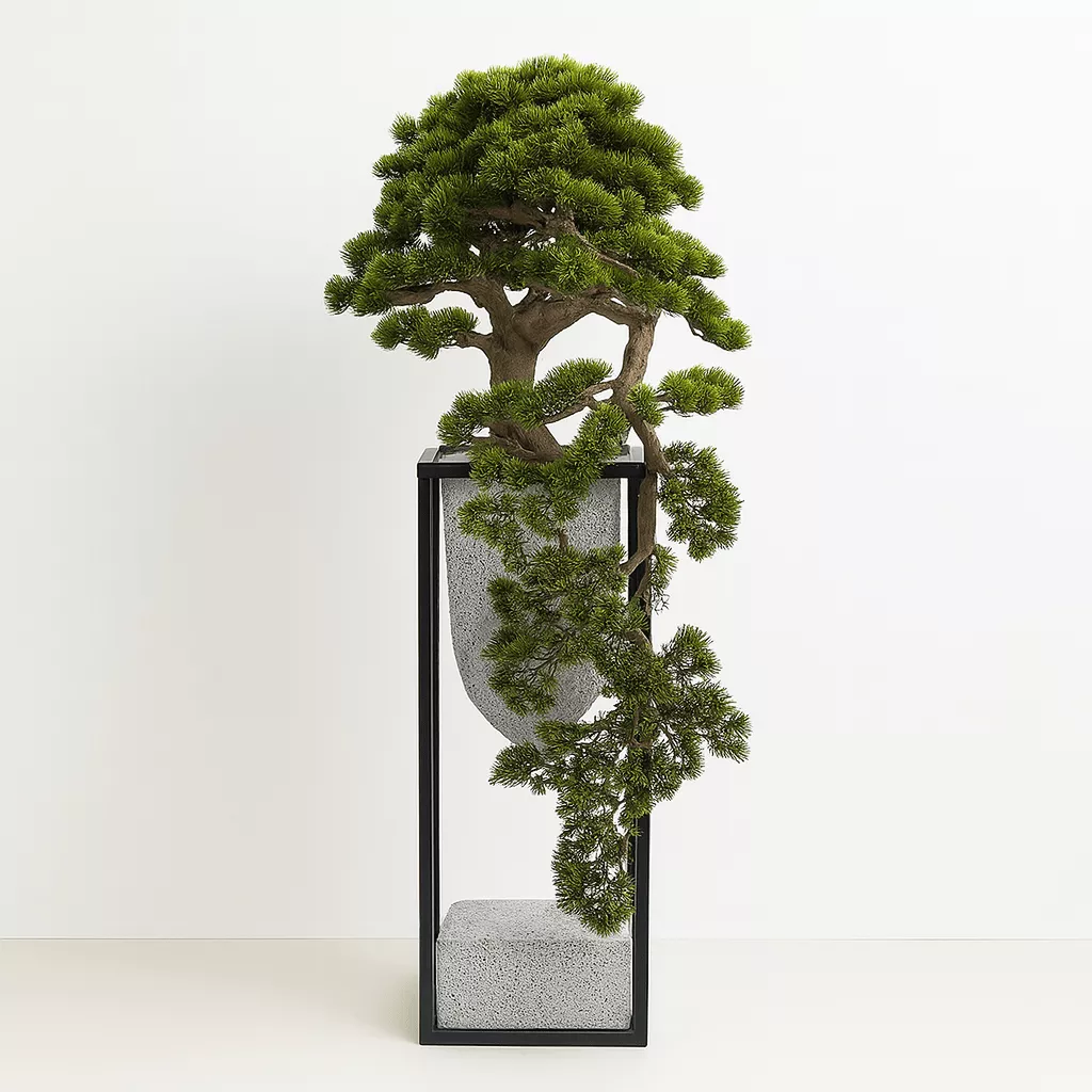 Apportez une touche de nature sophistiquée à vos espaces avec ce magnifique bonsaï en cascade, présenté dans un socle minéral brut et structuré par un piètement en métal noir. Inspirée de l’esthétique japonaise, cette pièce allie élégance végétale et lignes architecturales contemporaines.