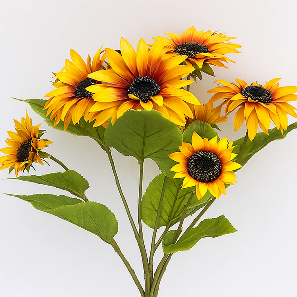 Apportez une touche de soleil à votre intérieur avec ce magnifique bouquet de tournesols artificiels orange, d’une hauteur de 52 cm. Composé de 7 fleurs réalistes, ce bouquet généreux illumine instantanément n’importe quelle pièce.