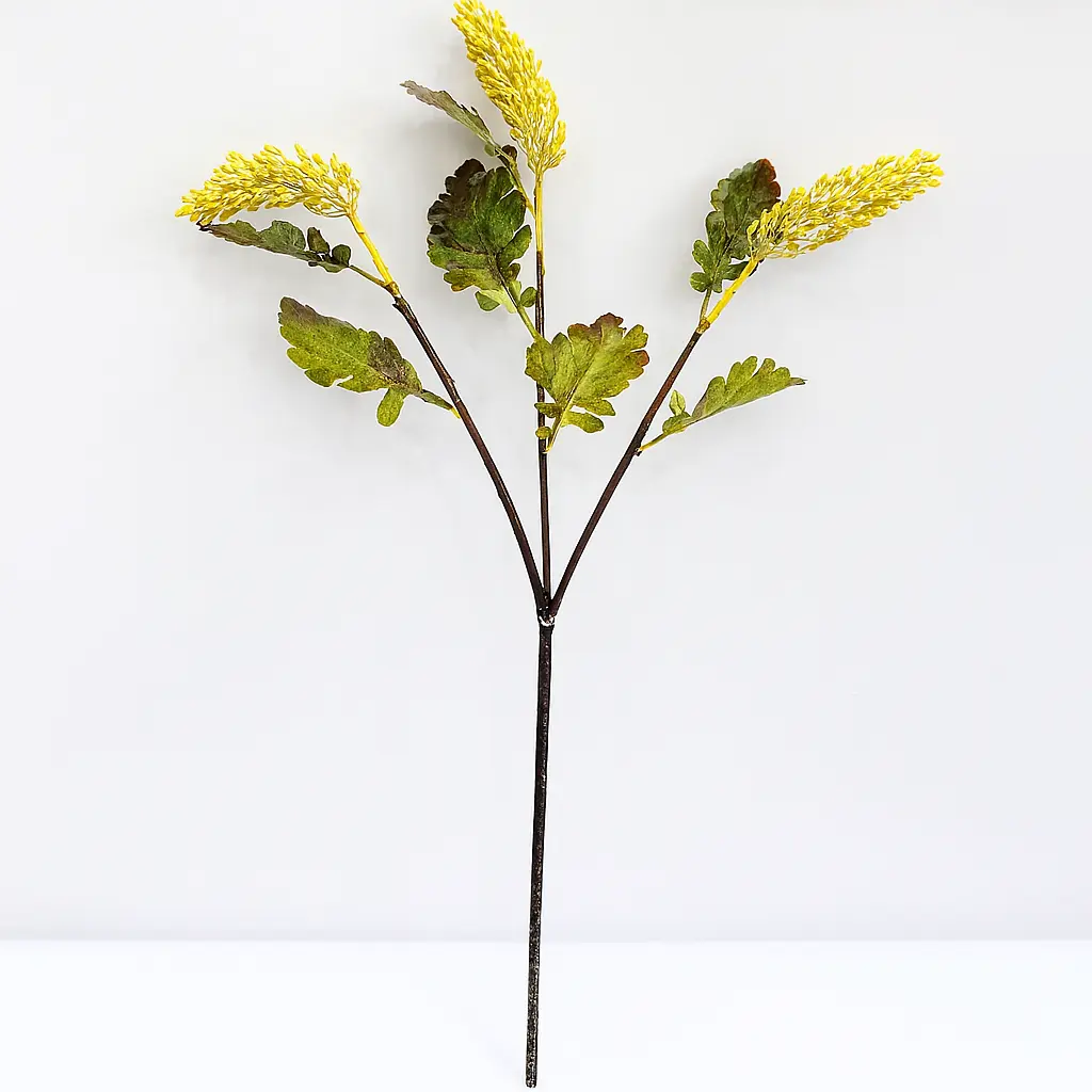 Fabriquée en plastique de haute qualité, cette branche reproduit fidèlement l’aspect du blé naturel, tout en étant parfaitement adaptée à un usage déco sans contrainte. Sa teinte jaune lumineuse en fait un excellent choix pour les intérieurs rustiques, bohèmes, ou pour des événements champêtres.
