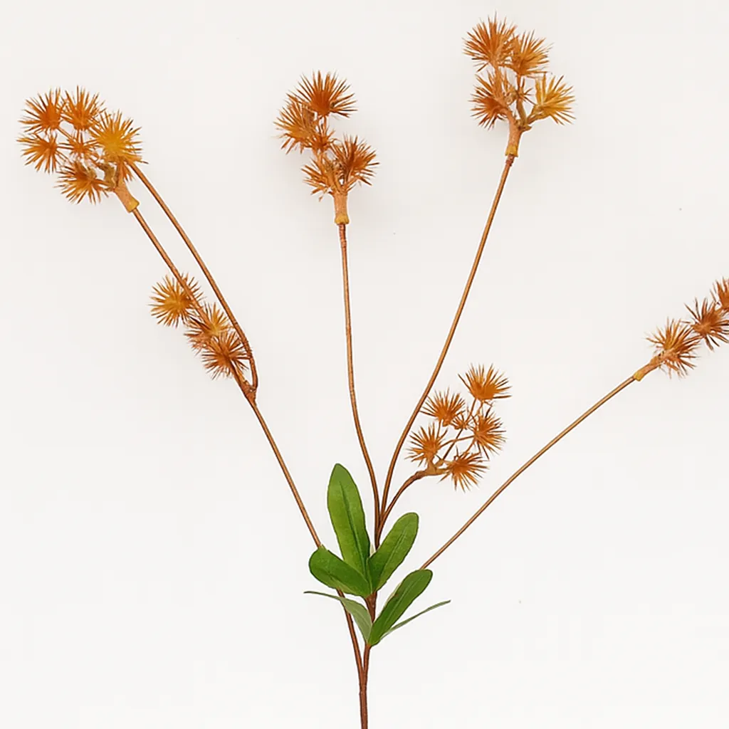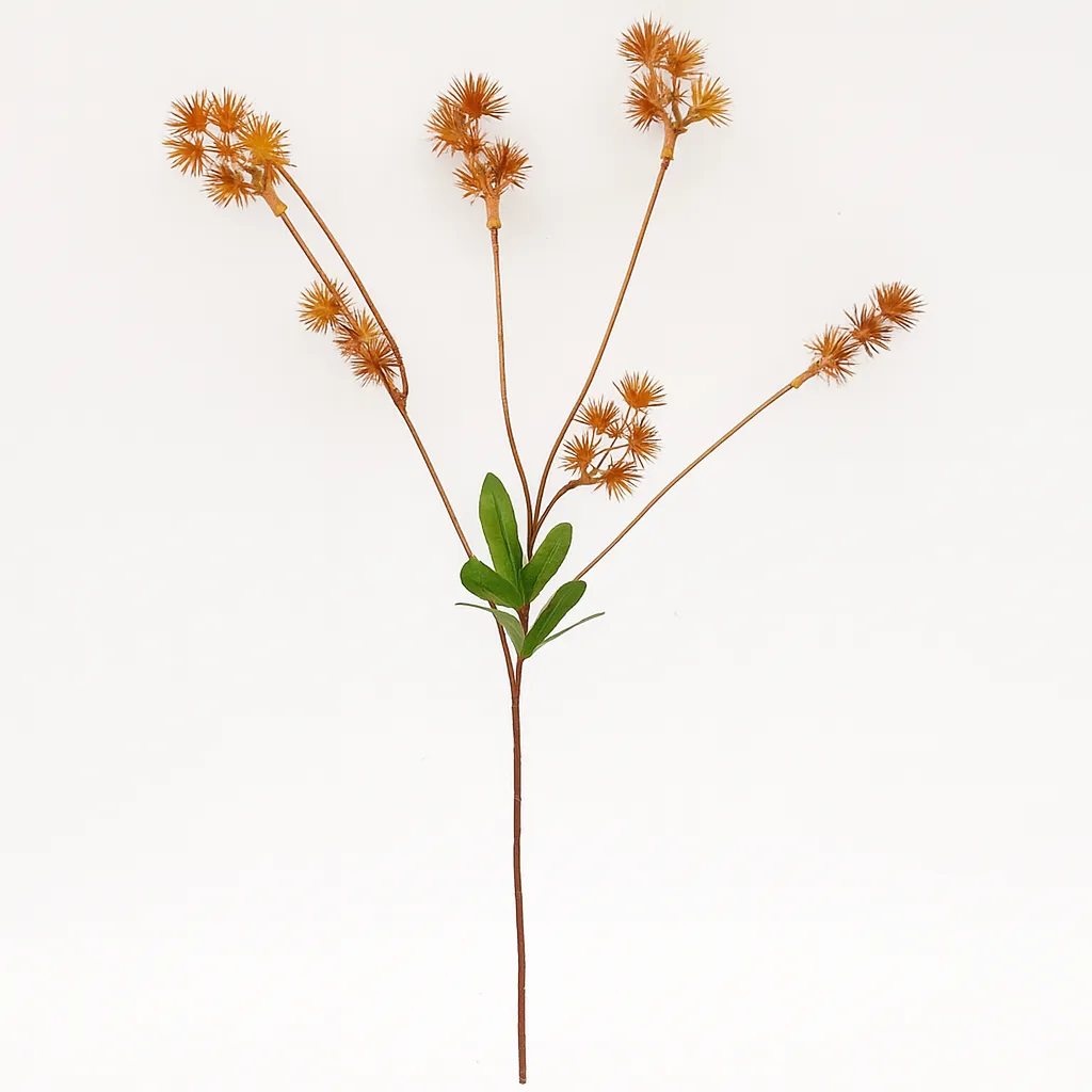Cette branche de petits pins artificiels orangés mesure 53 cm et convient parfaitement à un centre de table rustique, une déco murale ou une composition florale sèche. Durable, légère et sans entretien.