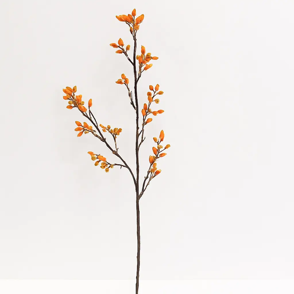 Apportez une touche méditerranéenne et colorée avec cette branche d’olive à baies orange, fine et réaliste.