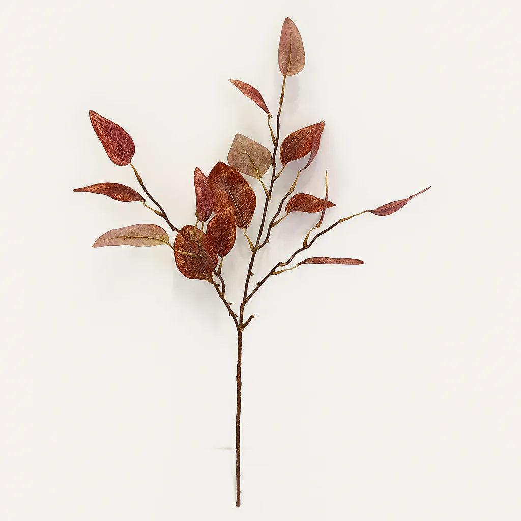 Conçue en plastique de haute qualité, cette branche imitation eucalyptus séduit par ses teintes rouges profondes et ses feuilles finement texturées.