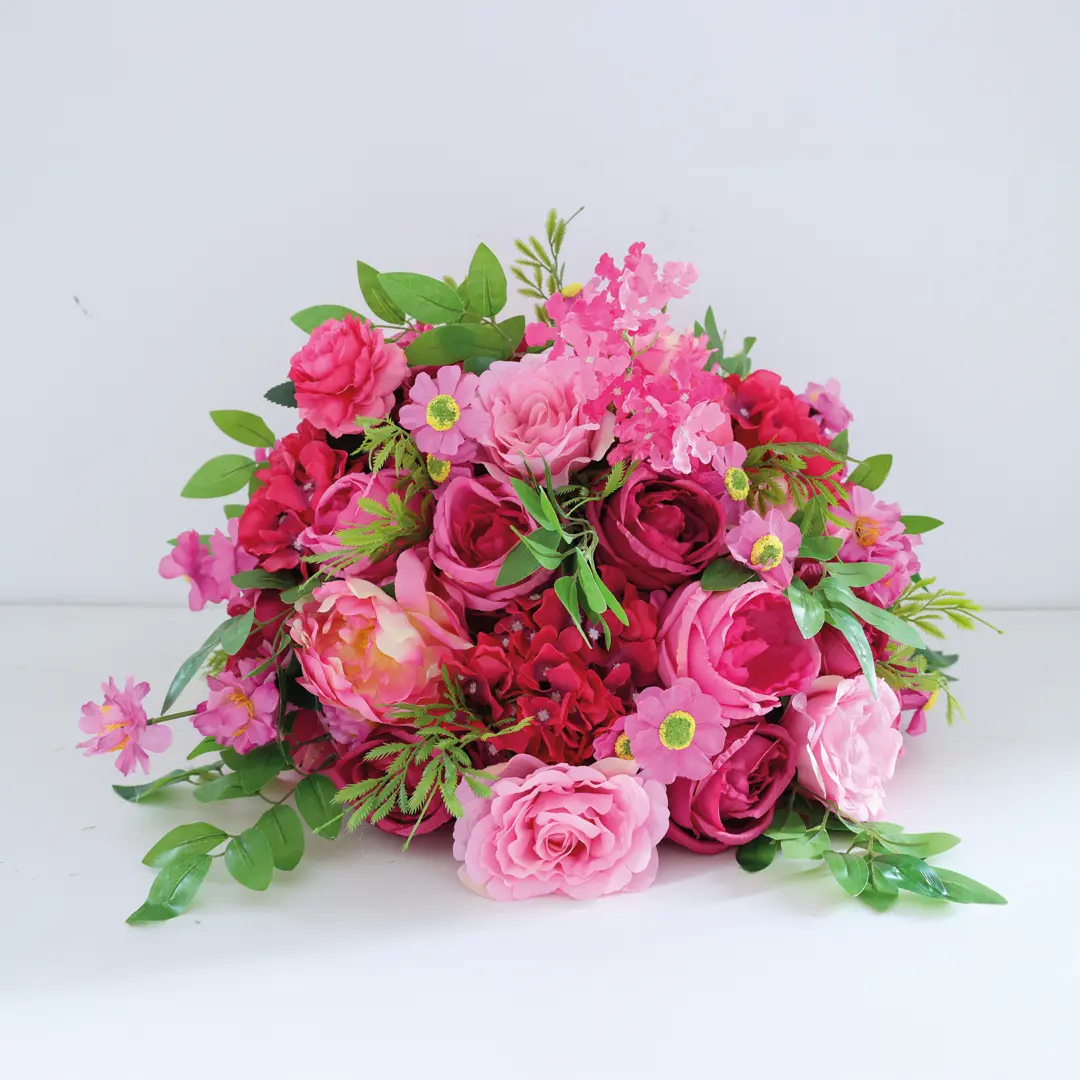 Centre de table boule florale rose et rouge 50 cm, éclatant et réaliste pour sublimer mariage, réception ou vitrine sans entretien.