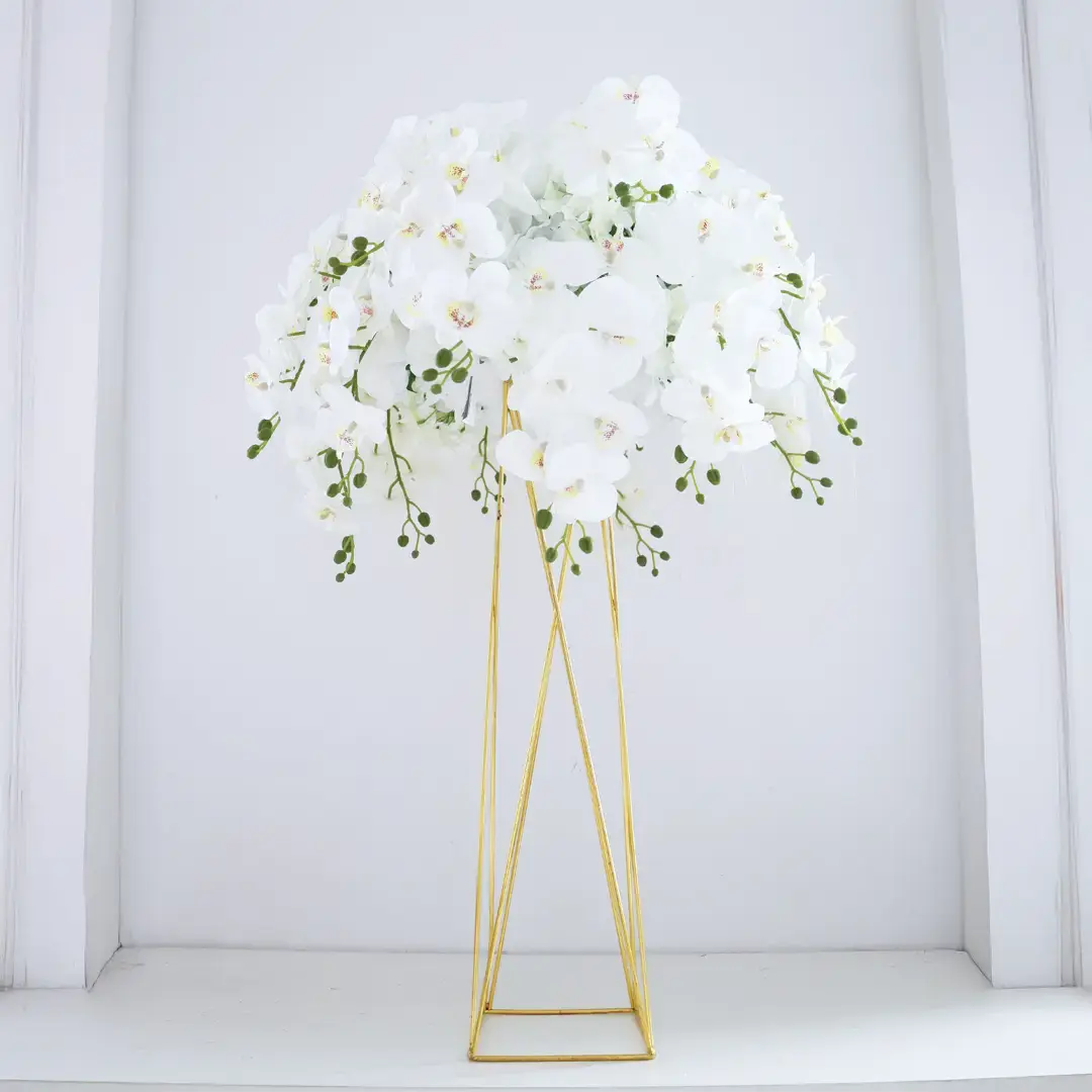 Centre de table boule florale orchidées blanches 45 cm, chic et réaliste pour sublimer mariages et réceptions sans entretien.