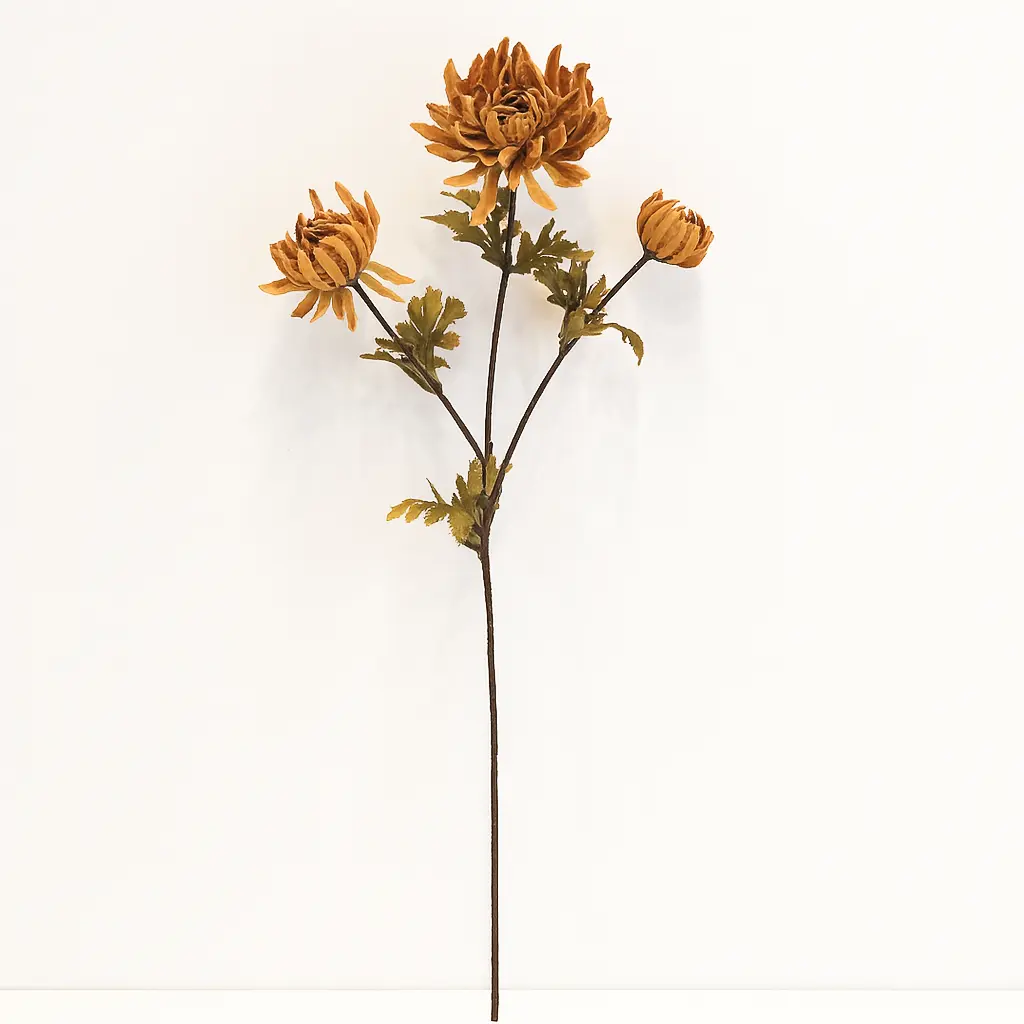 Apportez une ambiance chaleureuse avec ce chrysanthème artificiel orange à 3 fleurs, parfait pour l’automne.