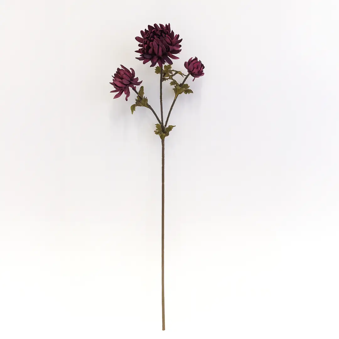 Sublimez votre déco avec ce chrysanthème violet artificiel à 3 fleurs, chic et mystérieux.