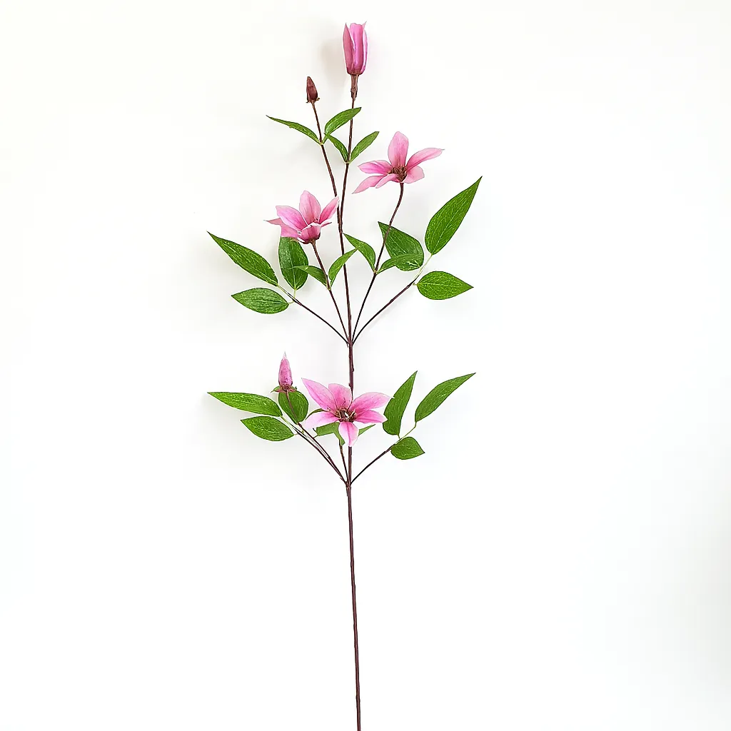 Tige florale de clématite rose artificielle, idéale pour une déco douce et naturelle.