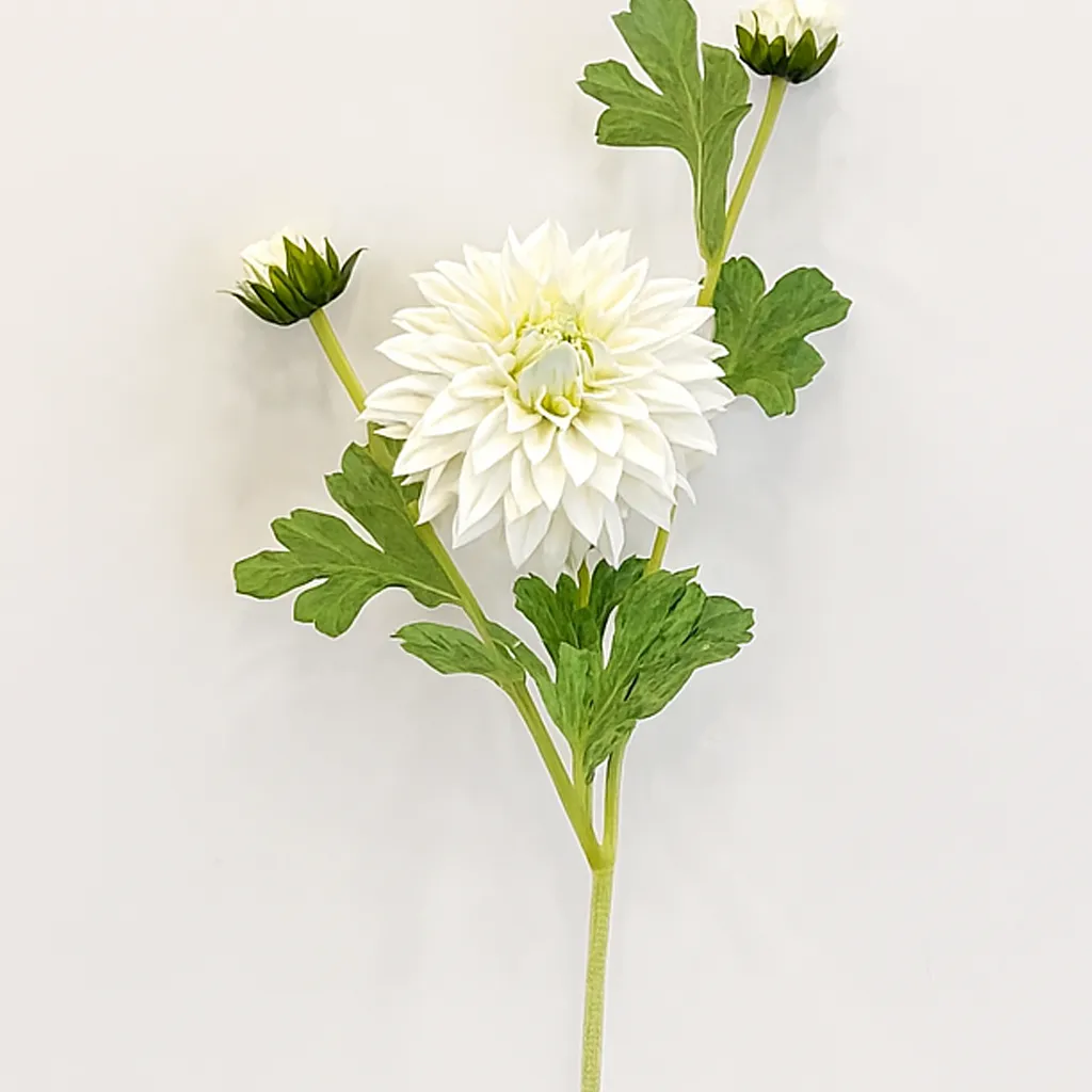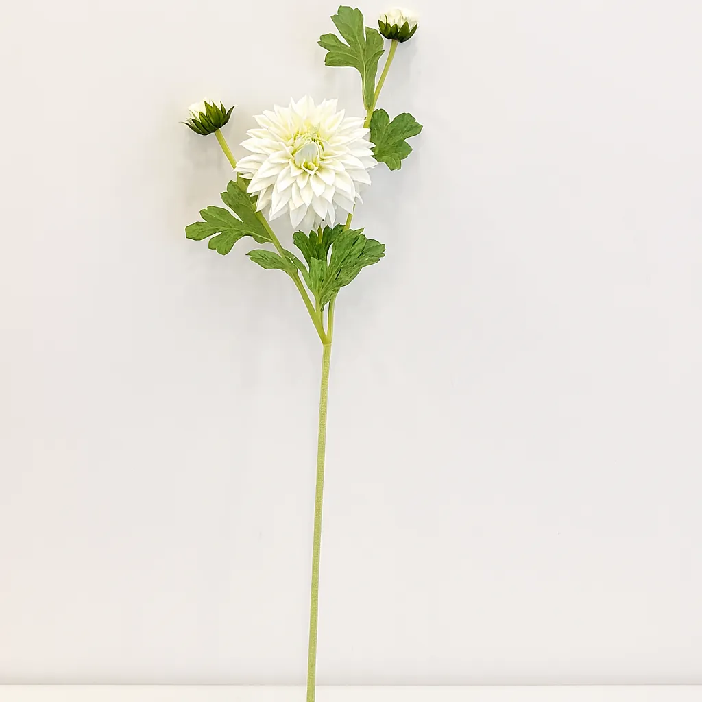 Dahlia Real Touch blanc – Élégance intemporelle sans entretien. Ces reproductions haut de gamme capturent toute la délicatesse des dahlias naturels pour des décors durables et sophistiqués.