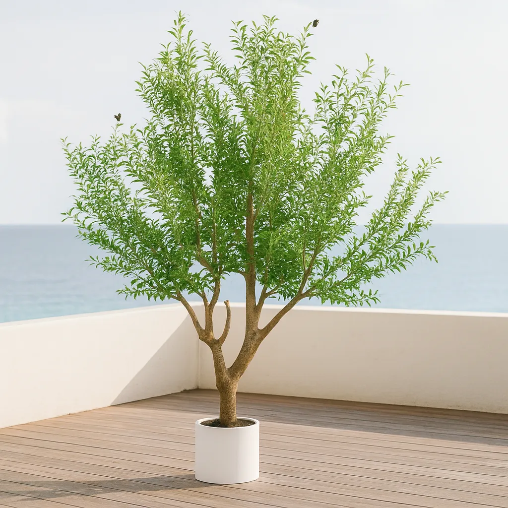 Avec son feuillage dense aux nuances de vert clair, ponctué de petites olives discrètes et son tronc travaillé effet naturel, cet olivier artificiel imite parfaitement le charme authentique d’un véritable arbre. Sa grande taille et sa silhouette majestueuse en font une pièce décorative forte, idéale pour habiller de grands espaces tels que salons, halls d’entrée, hôtels, restaurants, bureaux ou concept stores.