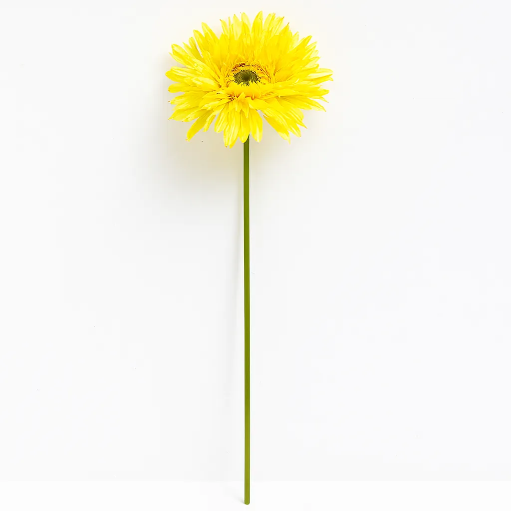 Gerbera soleil – Éclairez vos espaces avec cette variété jaune intense. Fleur généreuse au coloris vibrant, idéale pour créer des ambiances chaleureuses et énergisantes. Parfait pour décoration moderne ou cadeau positif.