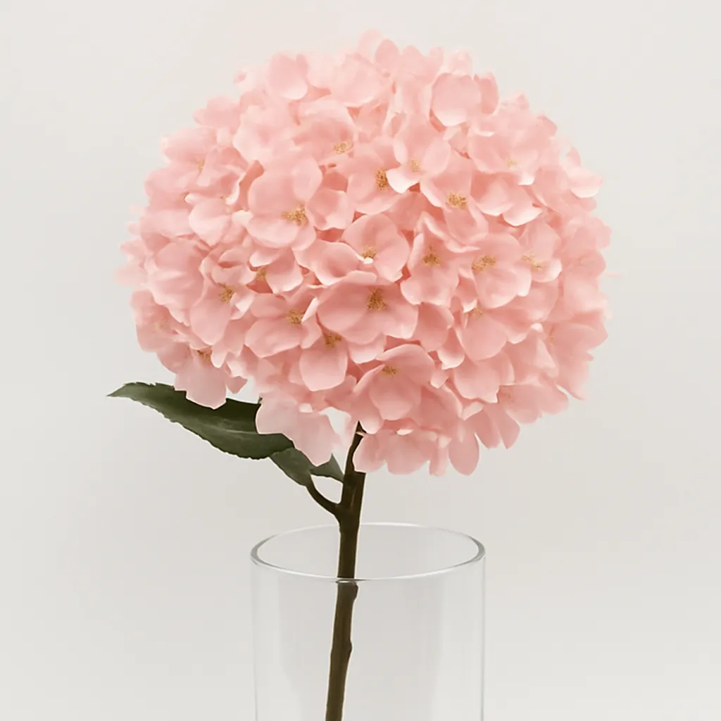 Apportez douceur et élégance avec cette grande fleur d’hortensia rose artificielle, fidèle au naturel.