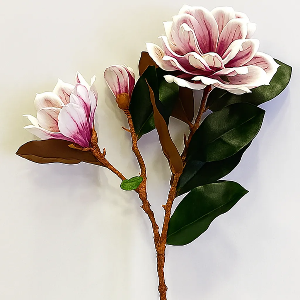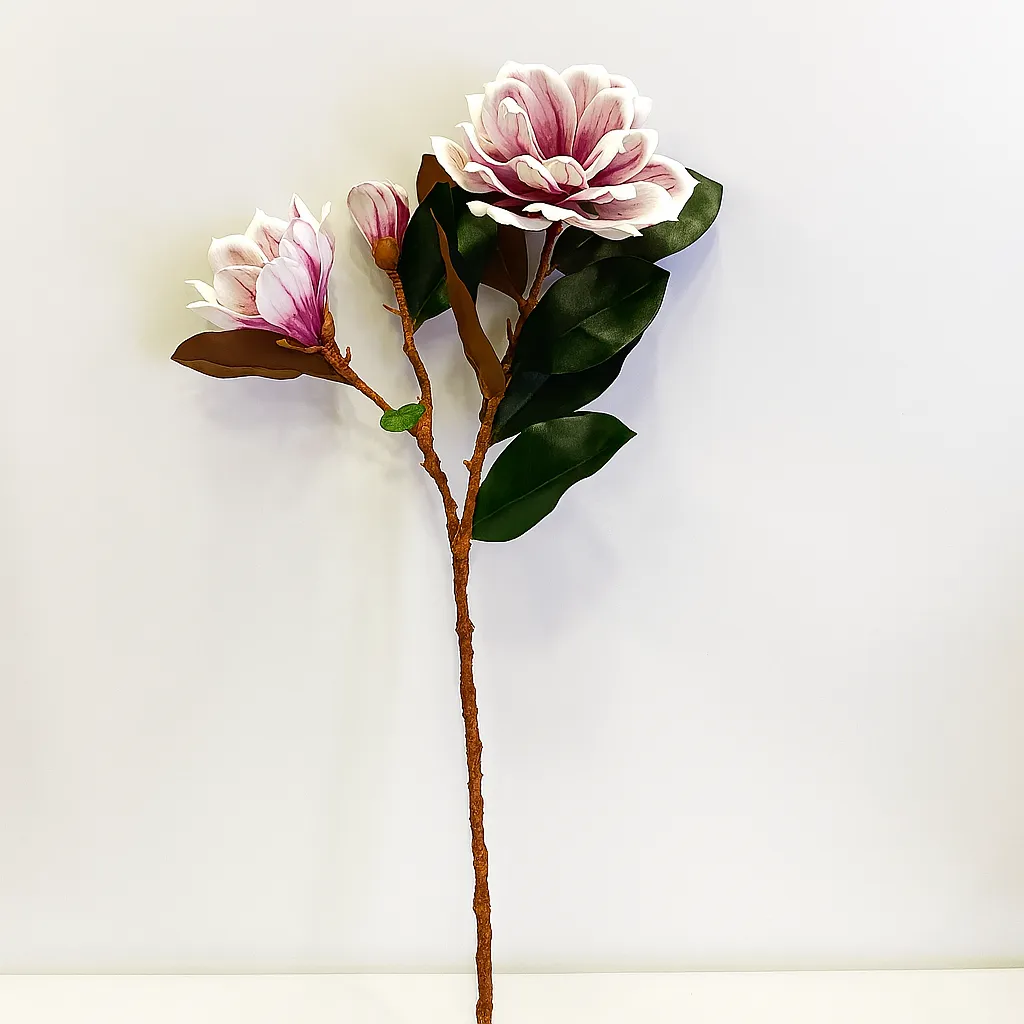 Magnolias roses clairs pour une ambiance romantique et naturelle.