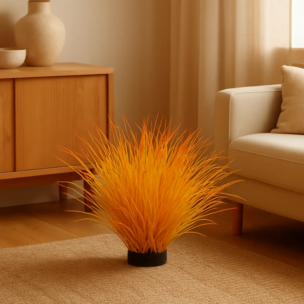 Apportez éclat et caractère à vos espaces avec cette graminée artificielle compacte Miscanthus de 38 cm, aux reflets jaunes dorés chaleureux. Idéale pour ajouter une note de couleur sans entretien, cette touffe réaliste est parfaite en décoration de table, centre de composition florale ou bordure de meuble.