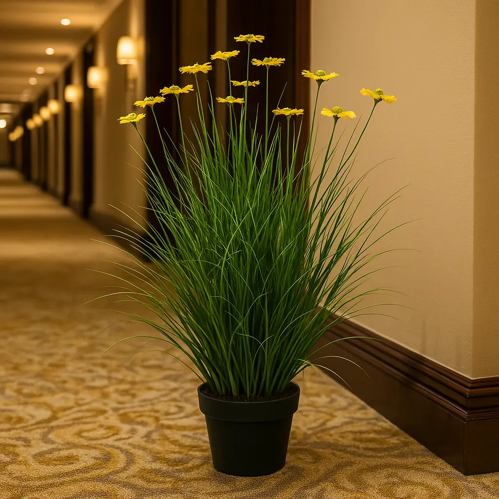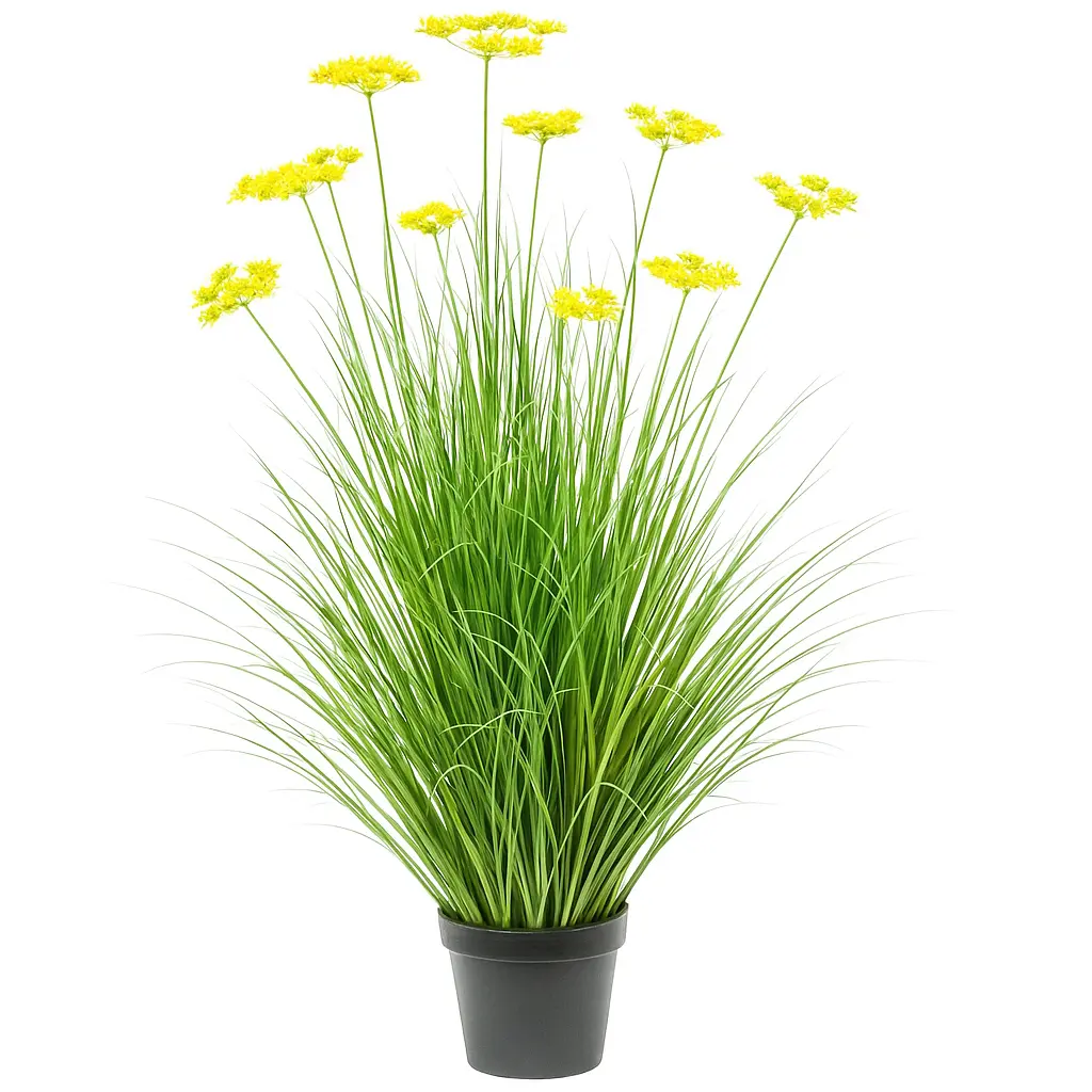 Graminée fleurie de 120 cm avec 11 fleurs jaunes, idéale pour une déco naturelle et lumineuse sans arrosage.
