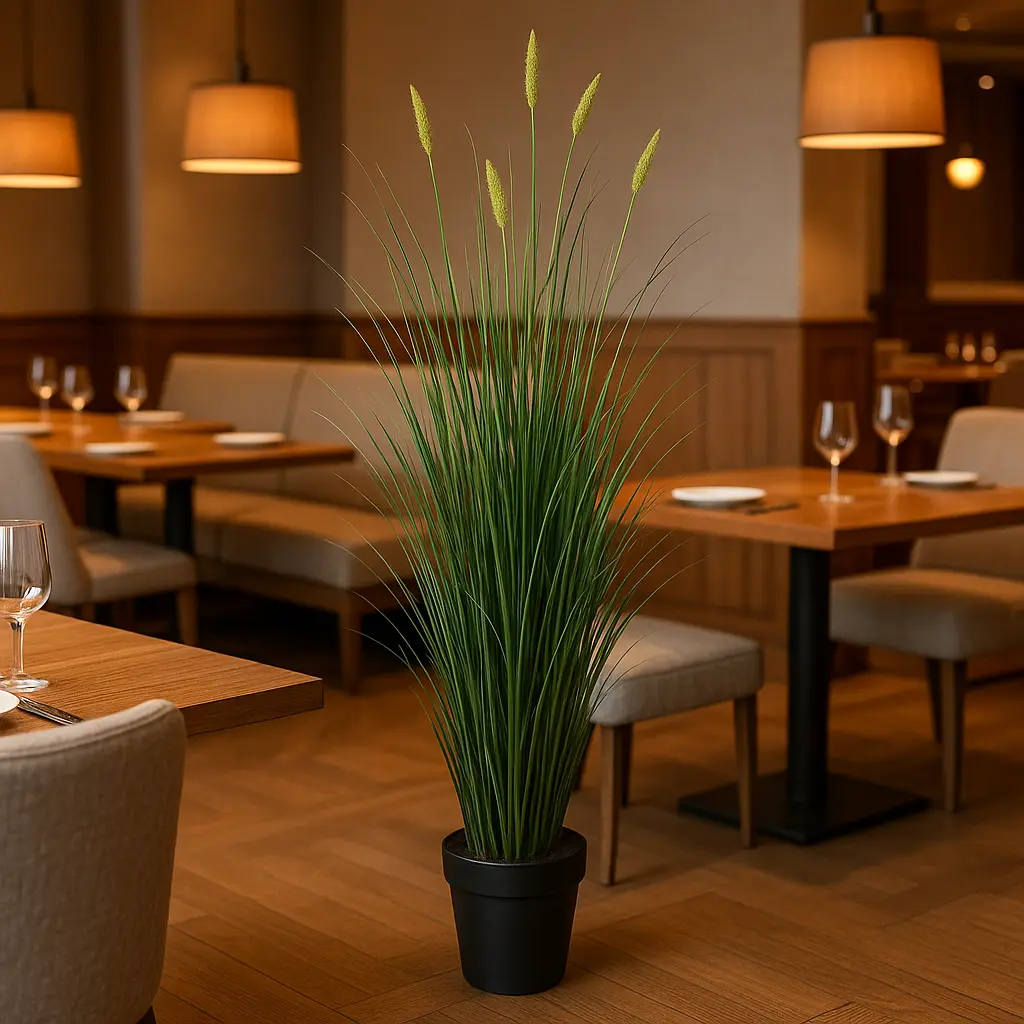 Son feuillage souple en plastique vert naturel et ses épis marron clair lui donnent un rendu bluffant de réalisme, sans les inconvénients des vraies plantes : aucun arrosage, aucune lumière, aucune chute de feuilles.