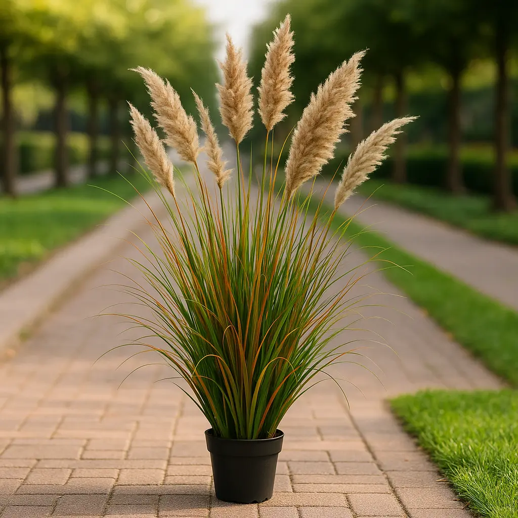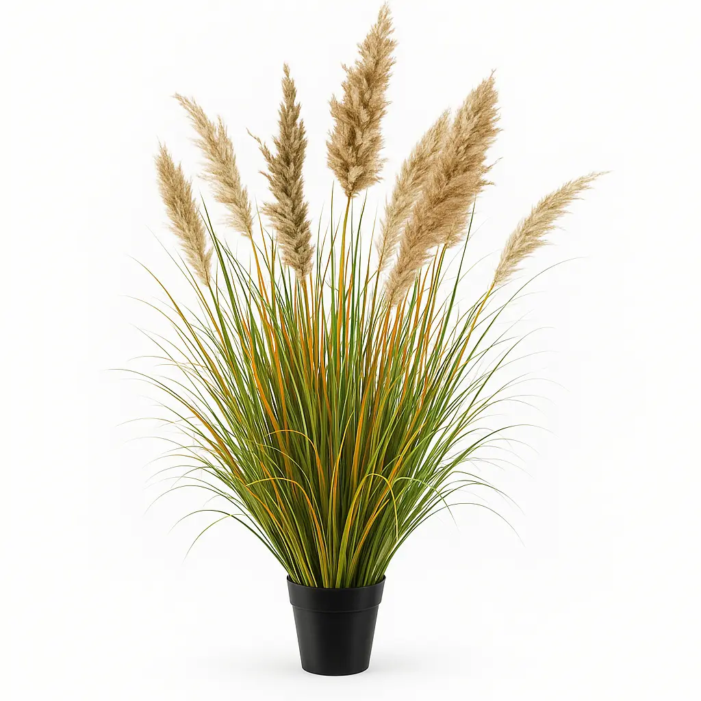 Le feuillage long et souple mêle des tons verts et cuivrés pour un effet chaleureux et automnal, tandis que les plumeaux apportent du volume et de la légèreté à l’ensemble. Fabriquée en plastique durable et réaliste, elle ne nécessite aucun soin et reste magnifique toute l’année.