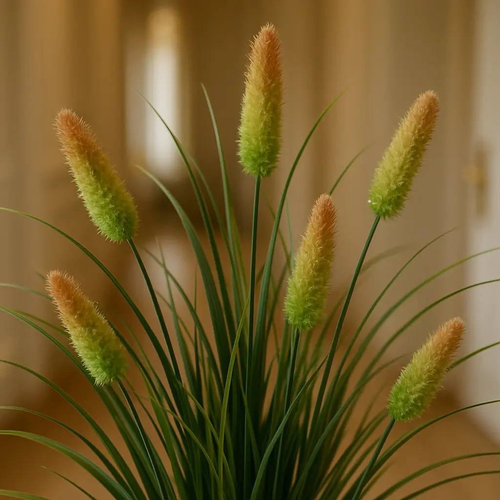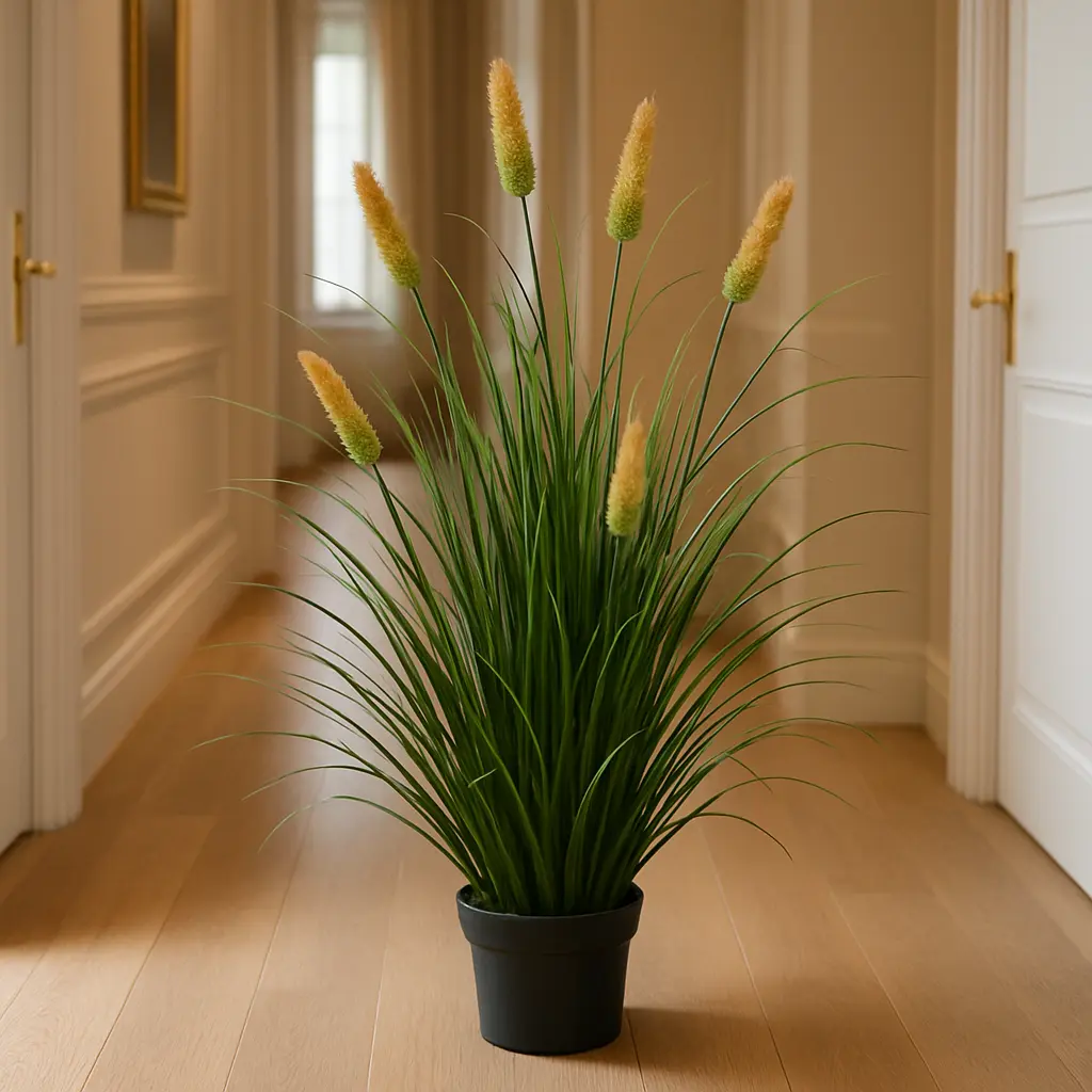 Graminée artificielle de 61 cm avec 6 épis verts, idéale pour une déco naturelle et facile à placer.