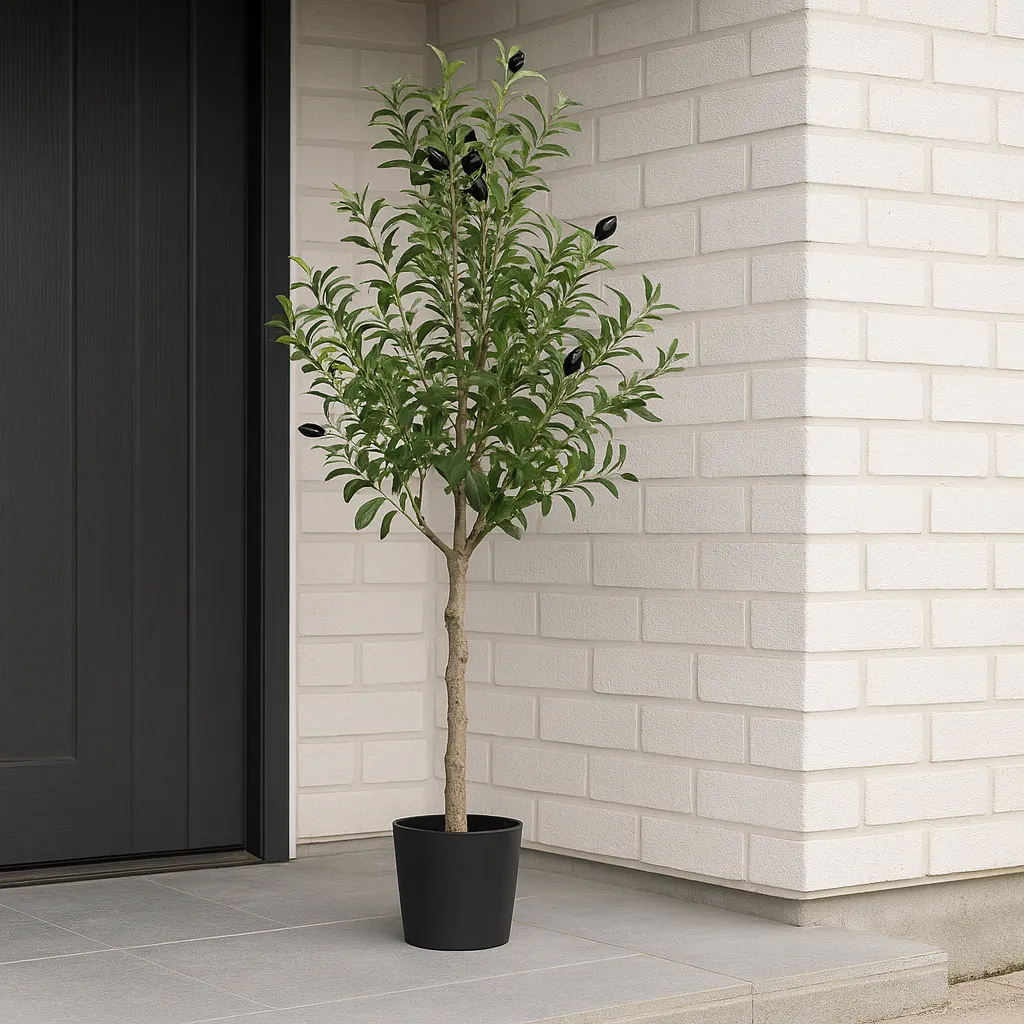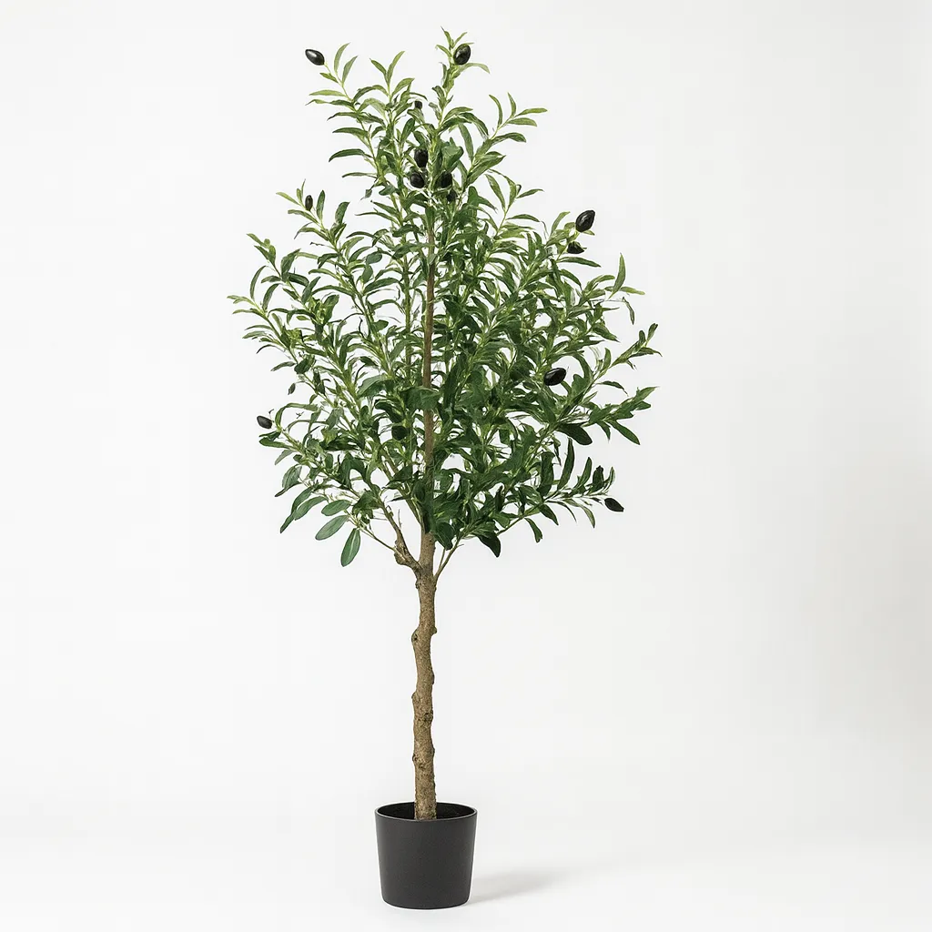 Son feuillage vert dense, ponctué de petites olives noires, offre un rendu naturel et raffiné. Son tronc effet bois apporte une authenticité supplémentaire, tout en garantissant une décoration durable et sans contrainte d’entretien.