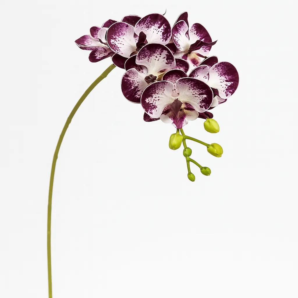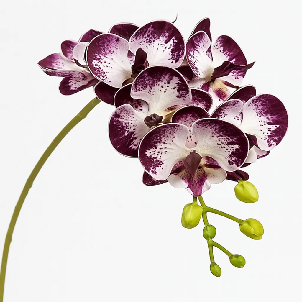 Cette orchidée à lèvres de couleur violette est idéale pour ajouter une touche sophistiquée à vos intérieurs. Sa forme délicate et sa texture fidèle à la réalité en font une pièce décorative intemporelle. Parfaite pour un salon, une salle de réception ou une boutique chic, elle ne nécessite aucun entretien.
