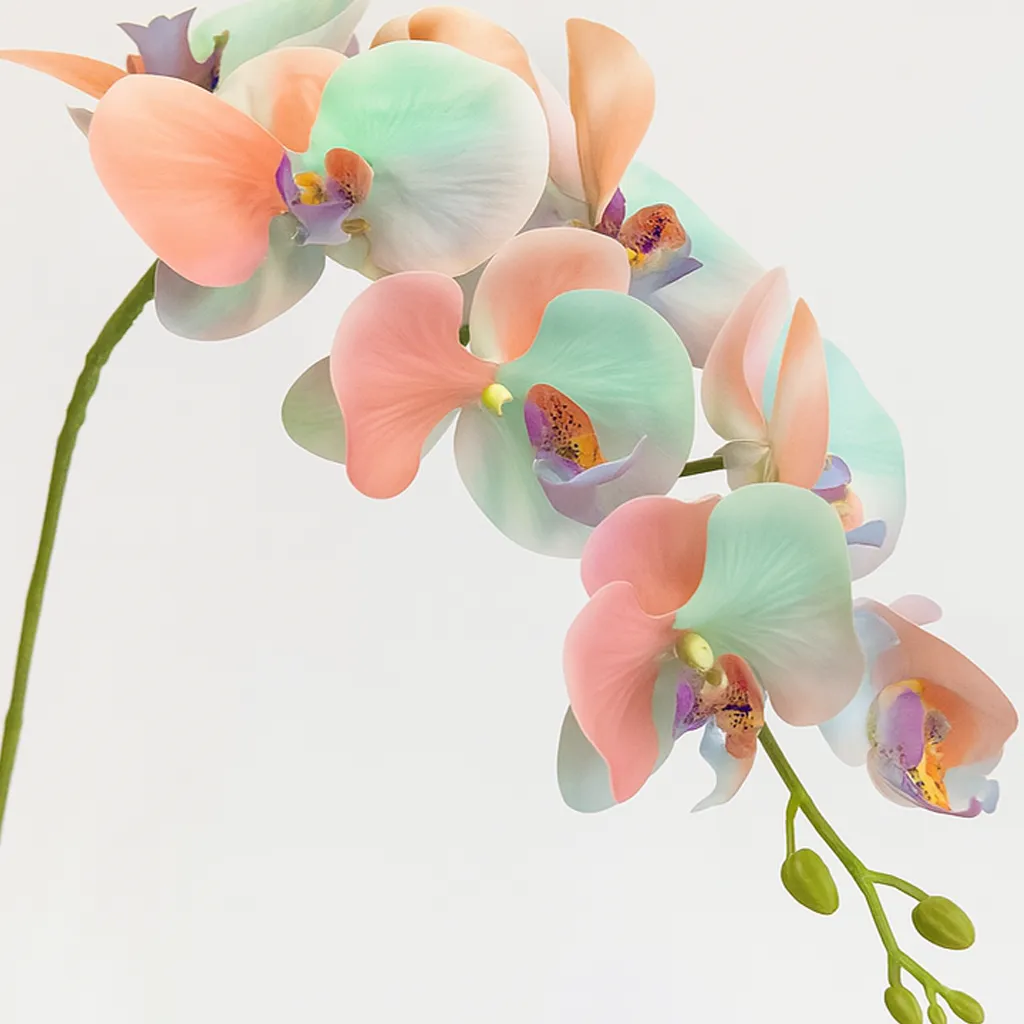 Laissez-vous séduire par cette orchidée macaron aux couleurs pastel (modèle 2#), haute de 95 cm. Avec ses fleurs délicatement colorées, elle s’intègre parfaitement dans une déco bohème, romantique ou moderne. Idéale pour les salons, chambres ou vitrines.