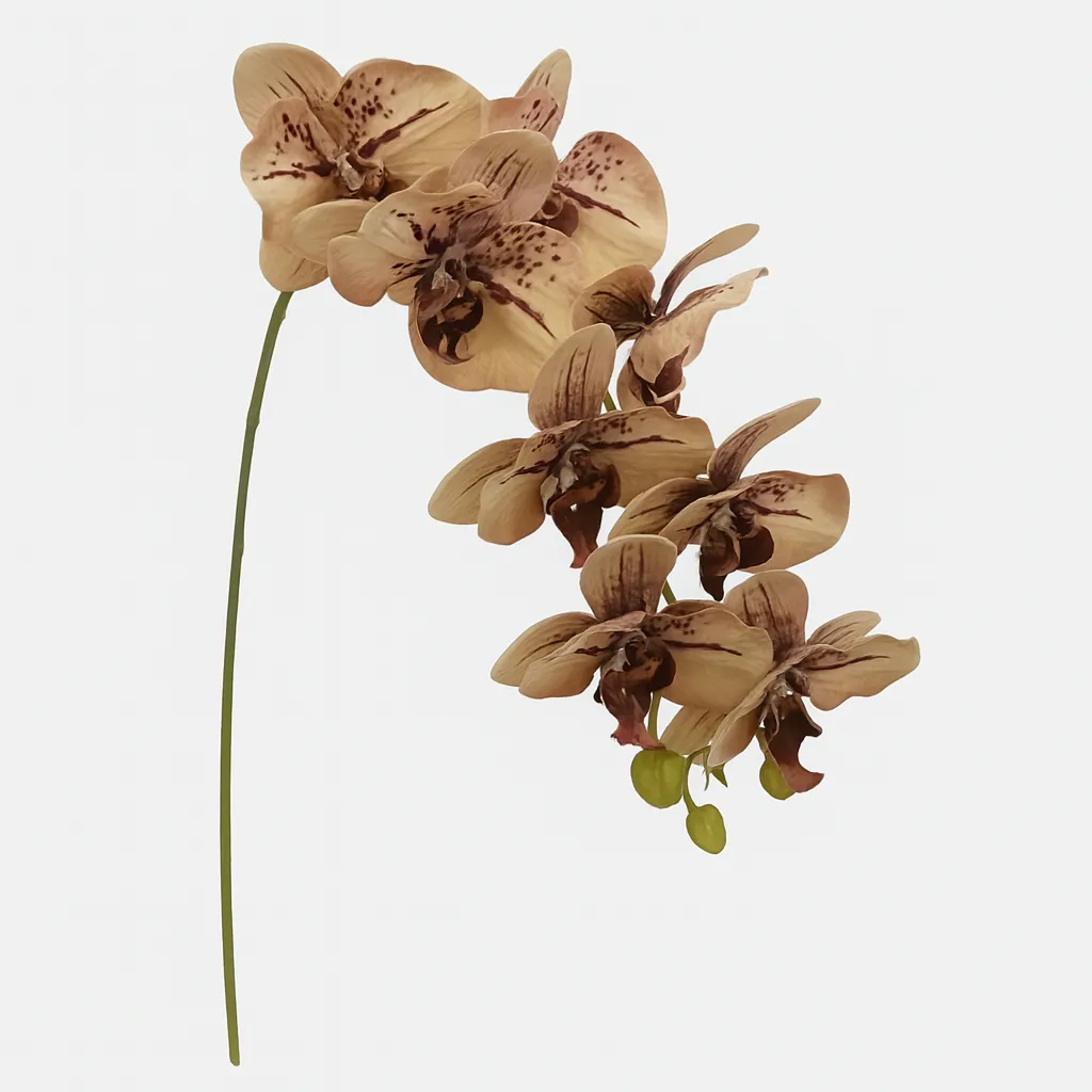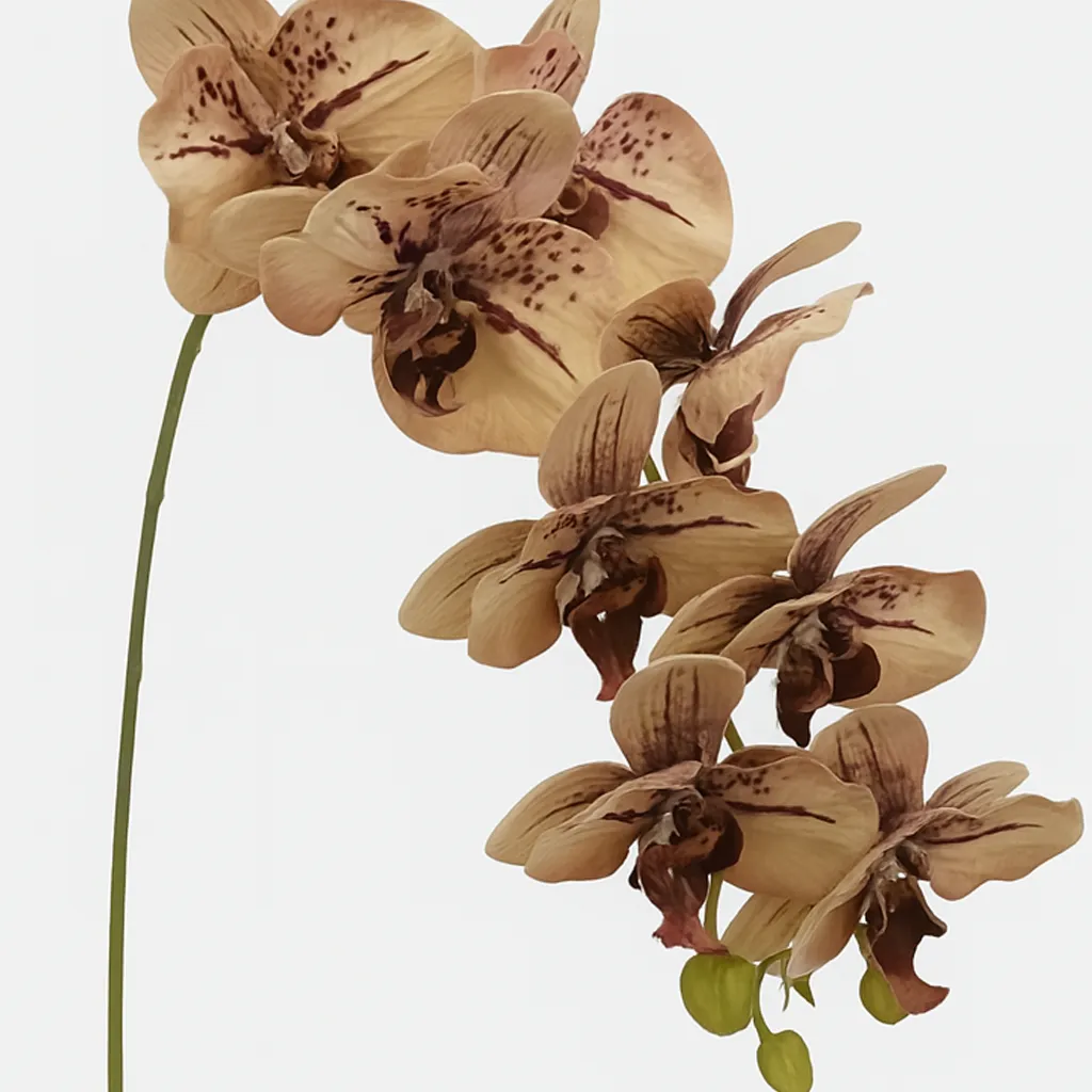 Cette orchidée papillon 3D couleur kaki offre une alternative élégante aux vraies fleurs. Avec ses 9 fleurs finement travaillées, elle s’intègre parfaitement dans un intérieur moderne, une salle d’attente ou un espace zen. Sa finition réaliste et sa matière durable en font une décoration sans entretien.