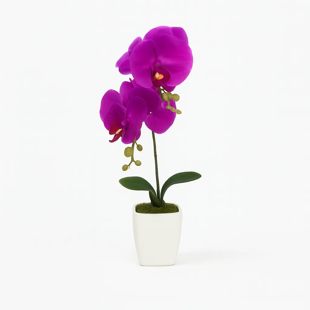 Ajoutez une note florale sophistiquée à votre décoration avec cette orchidée papillon artificielle de 30 cm, présentée dans un pot en céramique élégant. Fabriquée en plastique de haute qualité, elle imite parfaitement l’apparence naturelle d’une vraie plante, sans les contraintes d’arrosage ou d’entretien.