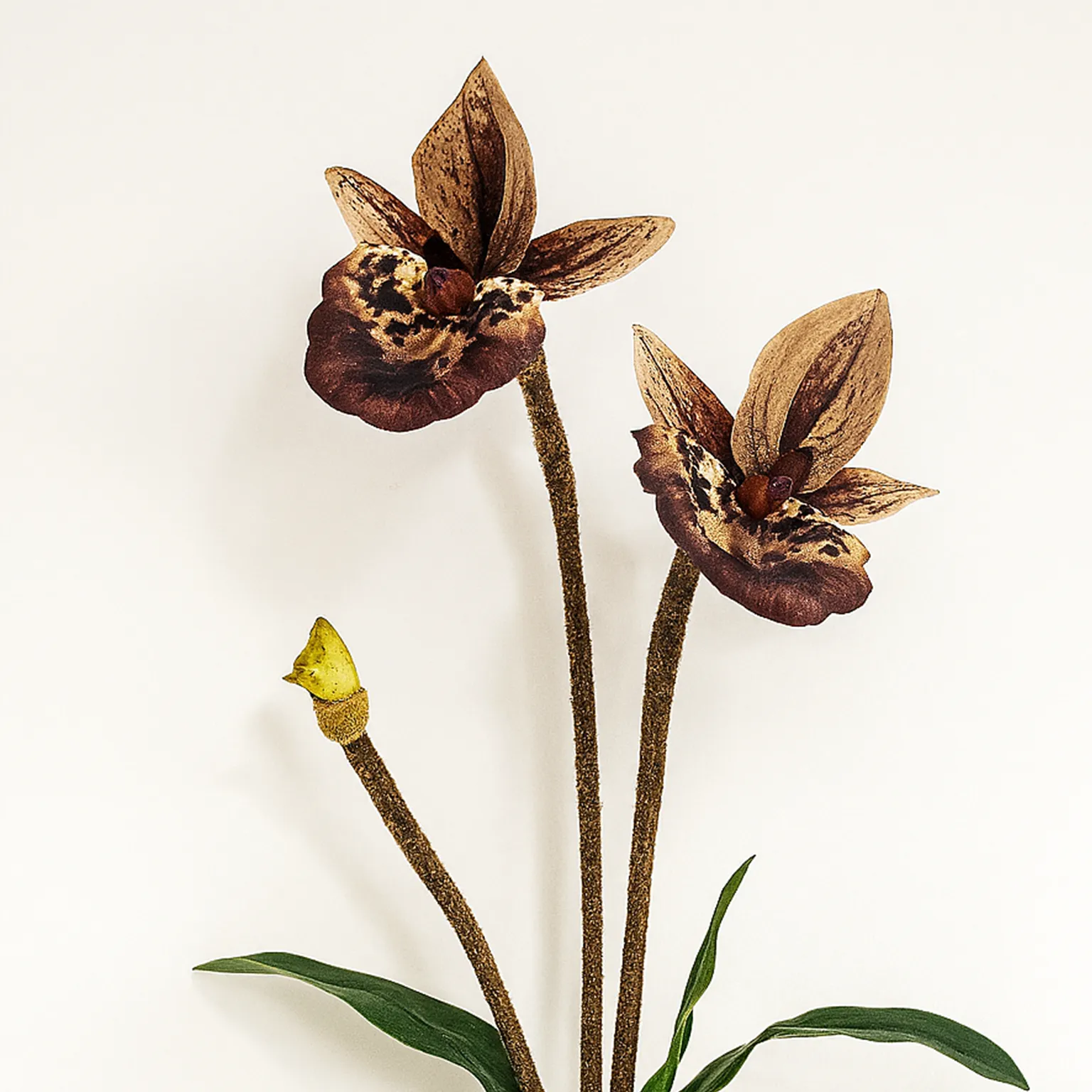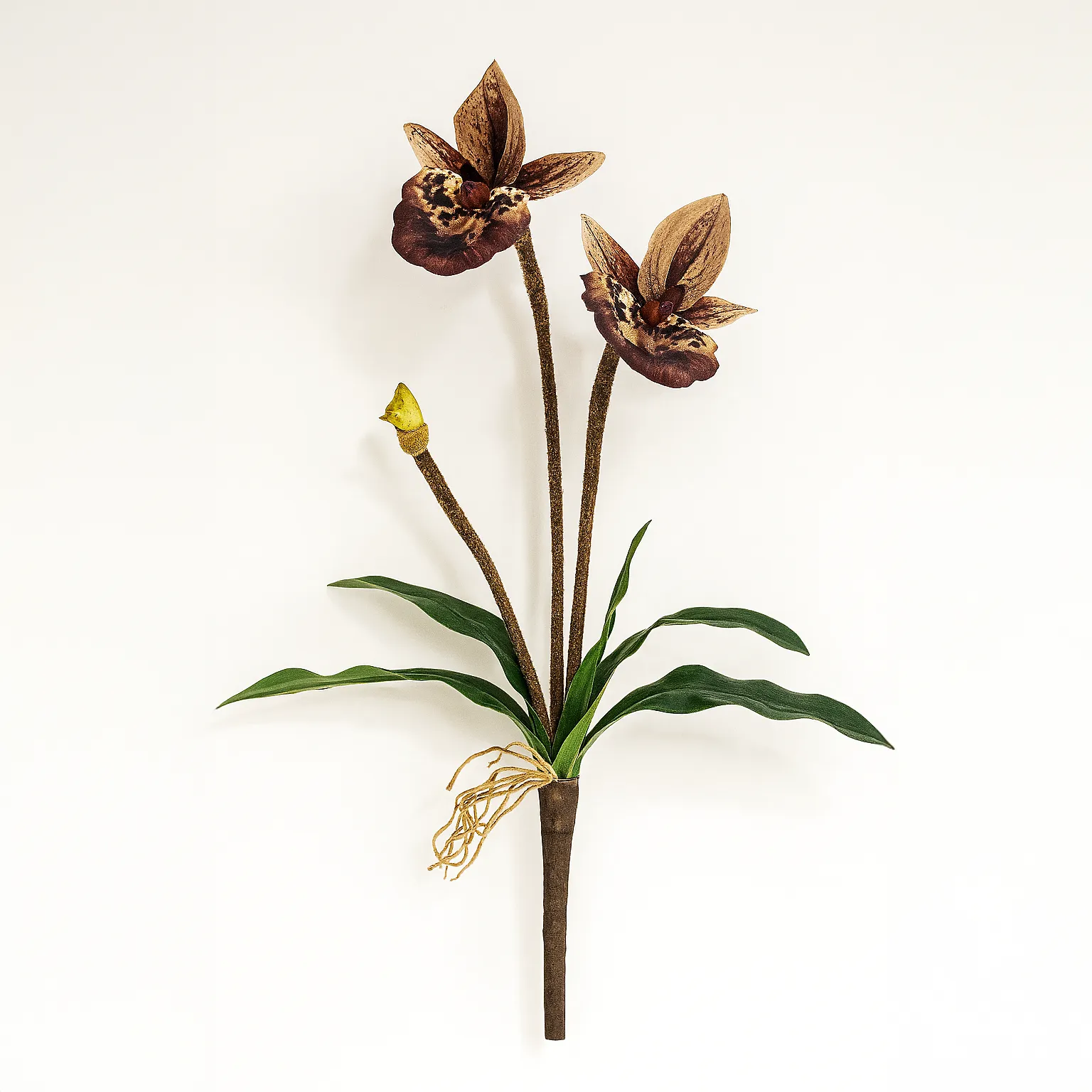 Ce paphiopodium kaki se distingue par sa forme unique et sa couleur terreuse raffinée. Parfait pour les amateurs d’orchidées originales, il s’intègre admirablement dans les décors naturels ou contemporains. Le lot de 12 tiges offre une excellente opportunité pour créer des compositions botaniques sophistiquées.