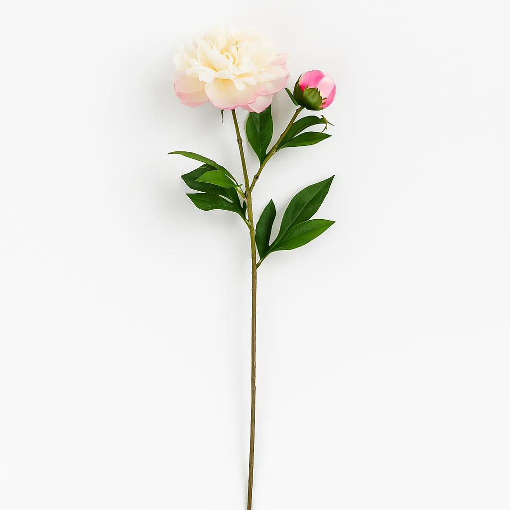 Apportez de la douceur et du romantisme à votre intérieur avec cette pivoine artificielle blanche et rose de 70 cm. Ce modèle unique associe une grande fleur ouverte et un bouton floral, pour un rendu encore plus naturel et poétique.