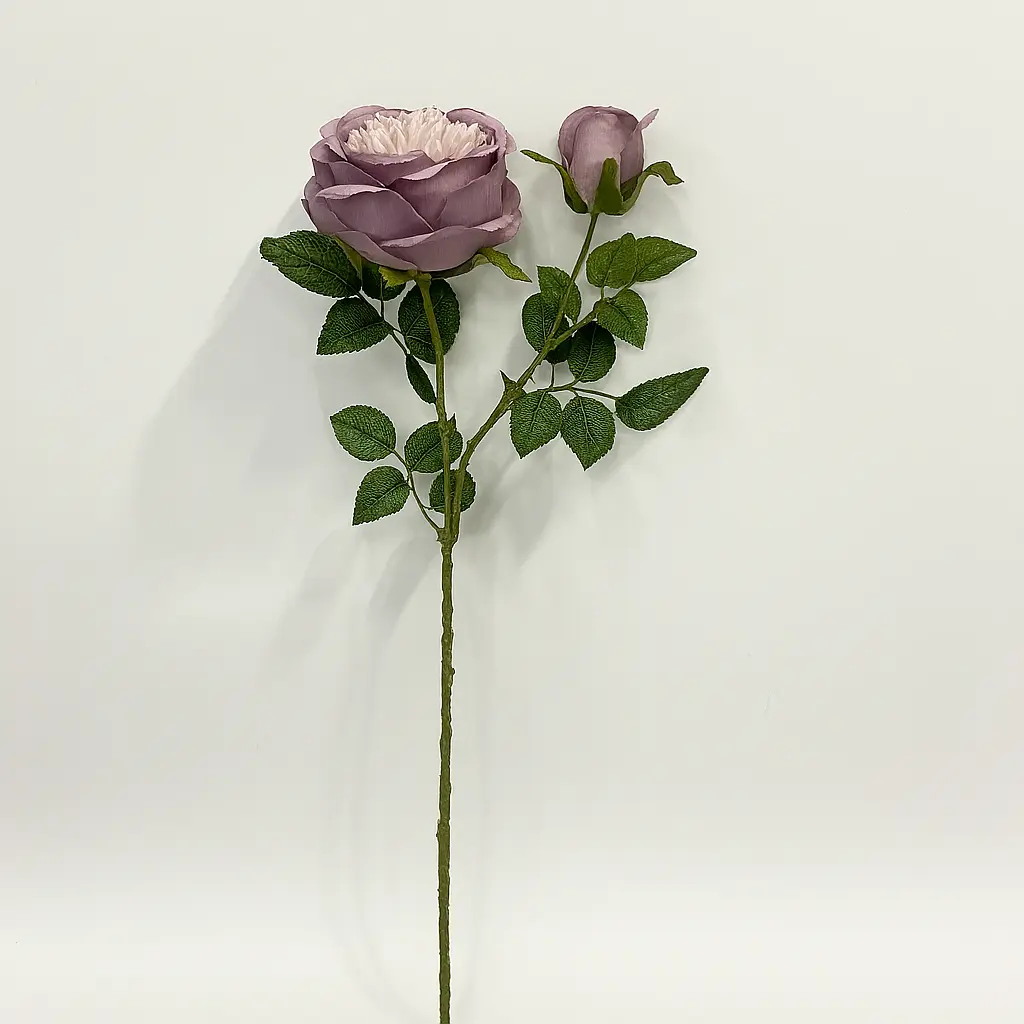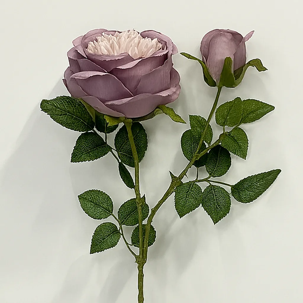 Rose violette givrée en plastique réaliste, parfaite pour une touche romantique et chic.