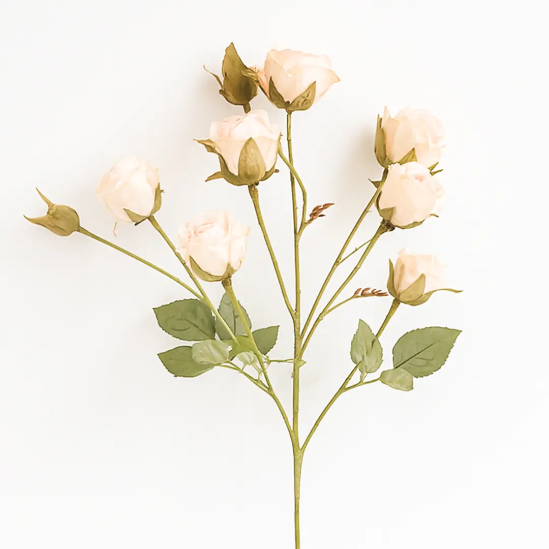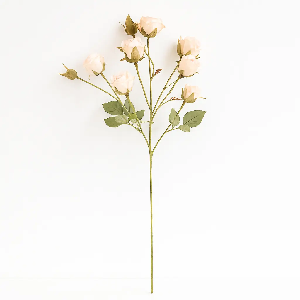 Rose artificielle rose pâle à dix têtes, parfaite pour une touche romantique et raffinée dans votre déco.